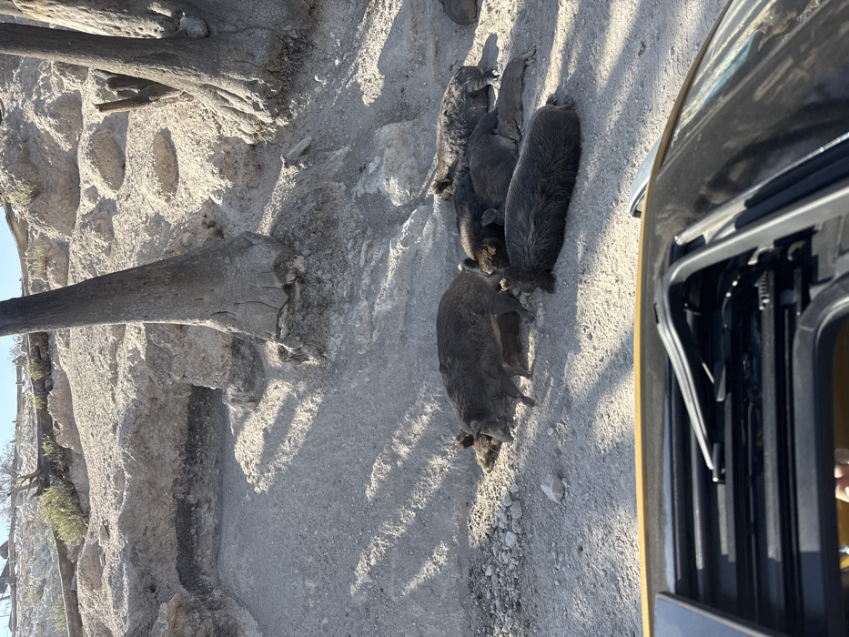 - "The image captures an arid outdoor scene at El Oasis Valsequillo, Mexico, featuring a group of wild boars observed from a vehicle" by FM-NVhht2, licensed under CC BY 4.0