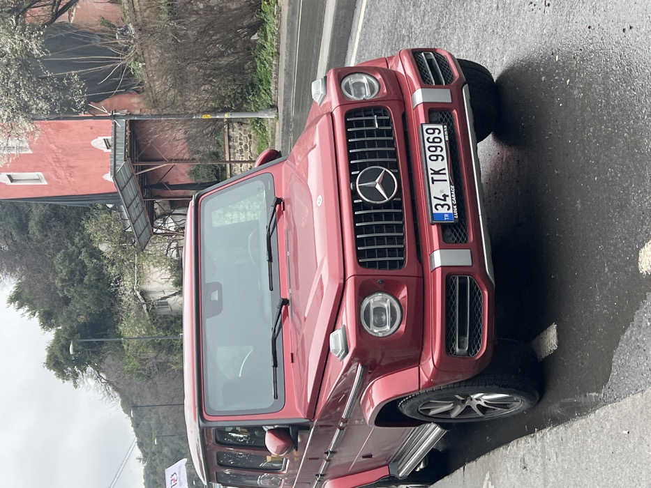 - "The image displays a red Mercedes-Benz G-Wagen, bearing Turkish license plate "34 TK 9969," parked curb-side on a wet asphalt street" by FM-A5lOj2, licensed under CC BY 4.0