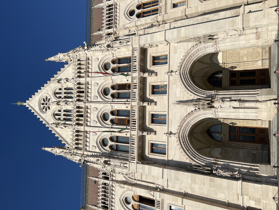 - "The image depicts an upward-angled view of the highly ornate, Neo-Gothic facade of the Hungarian Parliament Building, located in Budapest, Hungary" by FM-oJePr1, licensed under CC BY 4.0