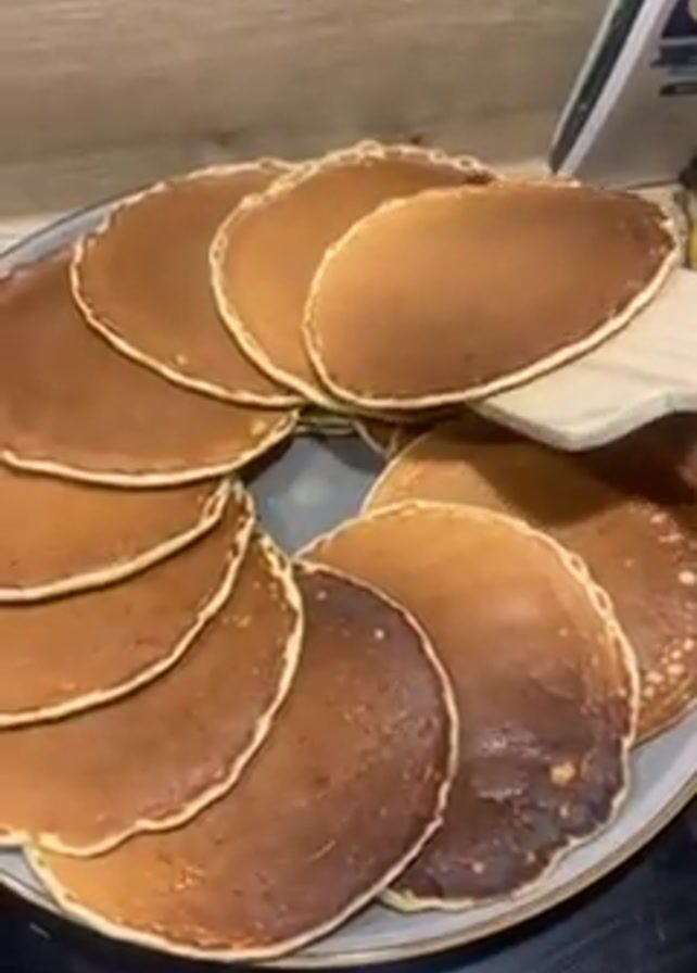 - "A plate piled high with golden brown pancakes sits on a reflective black surface, possibly a stovetop" by FM-gK2vv1, licensed under CC BY 4.0