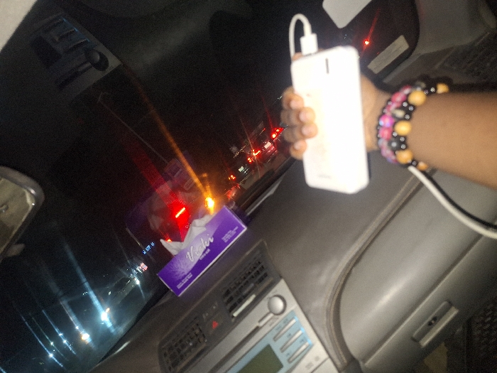 The image depicts the interior of a vehicle at night, situated in Ikate, Nigeria