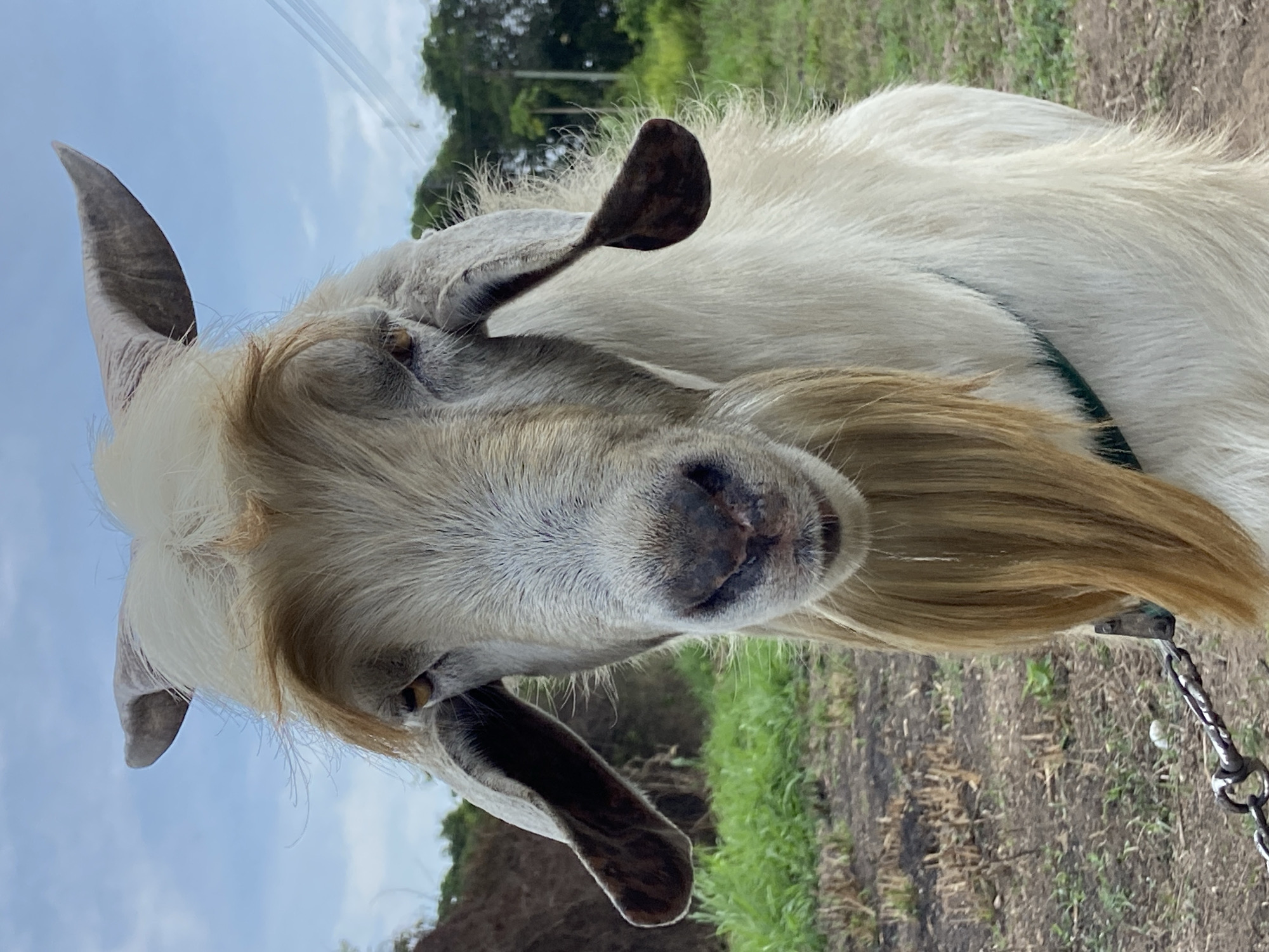 - "A close-up, downward-angle shot features a white goat with a tan beard and horns" by FM-faLbl2, licensed under CC BY 4.0