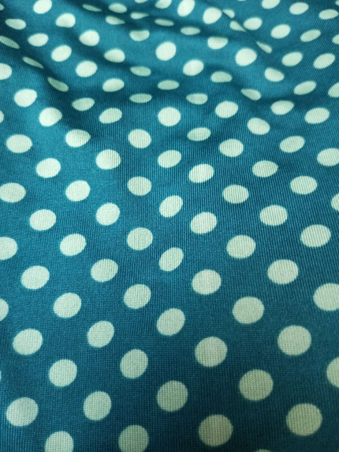 - "The image displays a close-up of a blue fabric with a pattern of uniformly spaced white polka dots" by FM-sEE0K3, licensed under CC BY 4.0