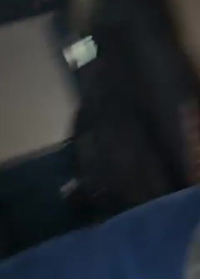 A woman with long blonde hair is taking a selfie video. She's wearing a black shirt and is holding a hookah pipe to her mouth. She inhales and then exhales a large cloud of white smoke towards the camera. The background includes a brick wall, a painting, and a partial view of a blue couch. There is also music playing in the background.
