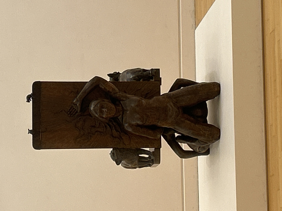 - "An indoor photograph captures a large, multi-component sculpture crafted from a dark, reddish-brown material, likely bronze or carved wood, within a museum context in Strasbourg, France" by FM-ZvYlO2, licensed under CC BY 4.0