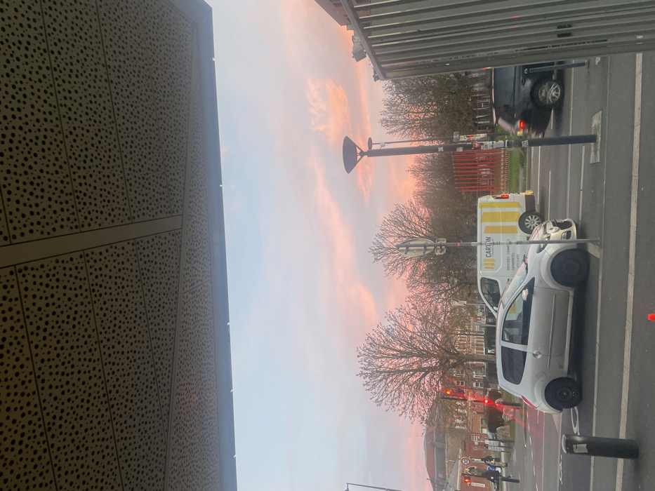 - "The image depicts an urban street scene in Roubaix, France, at twilight, characterized by a vibrant pink and orange sky with scattered clouds" by FM-xolim2, licensed under CC BY 4.0