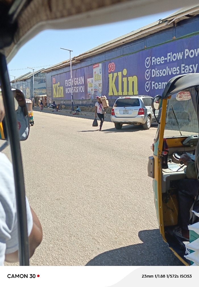 - "The image depicts a daytime street scene in Kabong, Nigeria, viewed from inside a yellow and green tricycle (keke napep)" by FM-hmmAj2, licensed under CC BY 4.0