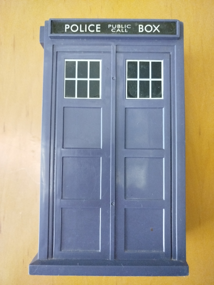 - "This image, captured in Sofia, Bulgaria, presents a frontal view of a dark blue, rectangular scale model resembling a British police public call box" by FM-h6H6w1, licensed under CC BY 4.0