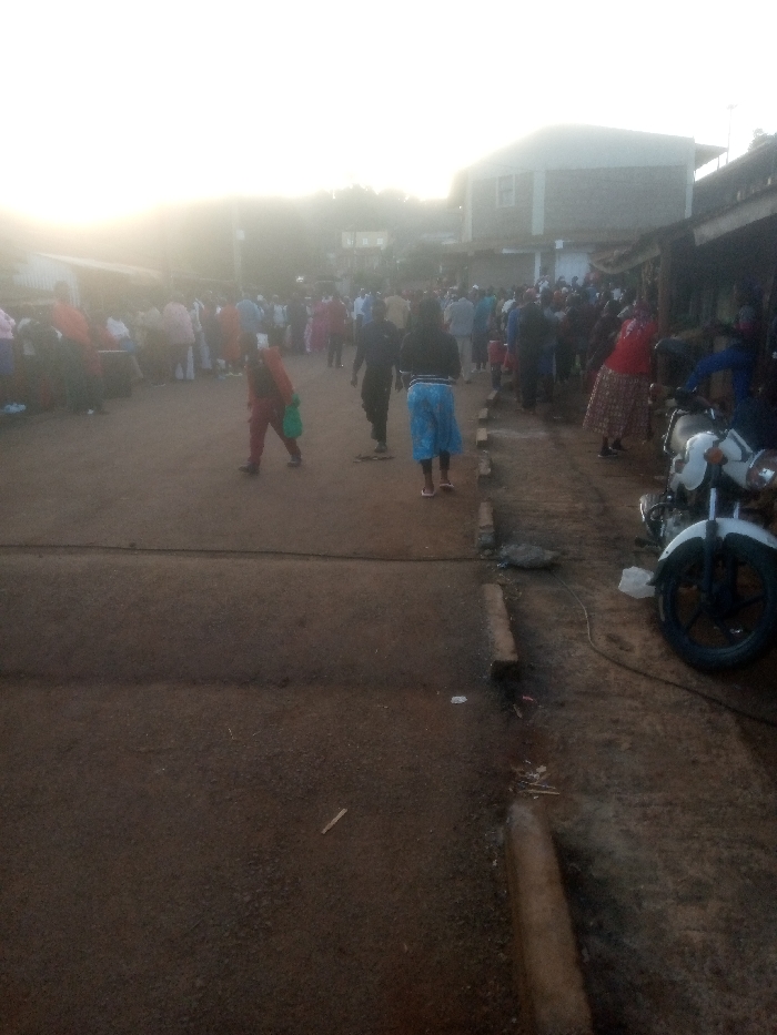 - "A crowd of people gathers on a dirt road near buildings" by FM-6Q4Sw2, licensed under CC BY 4.0