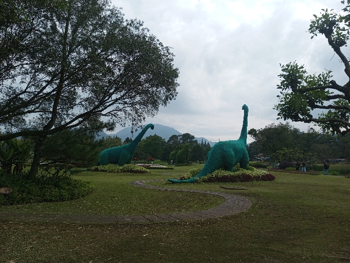 - "A lush green park features two large dinosaur sculptures covered in greenery" by FM-yoWFA2, licensed under CC BY 4.0