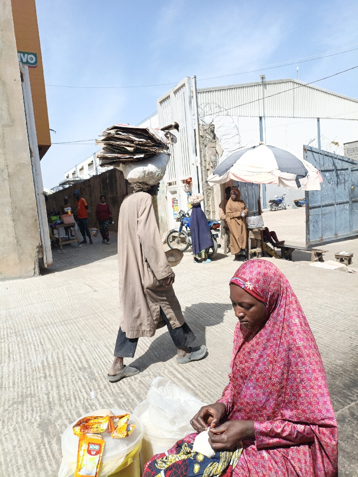 This image depicts an outdoor street scene in Fagge C, Nigeria, under clear daylight