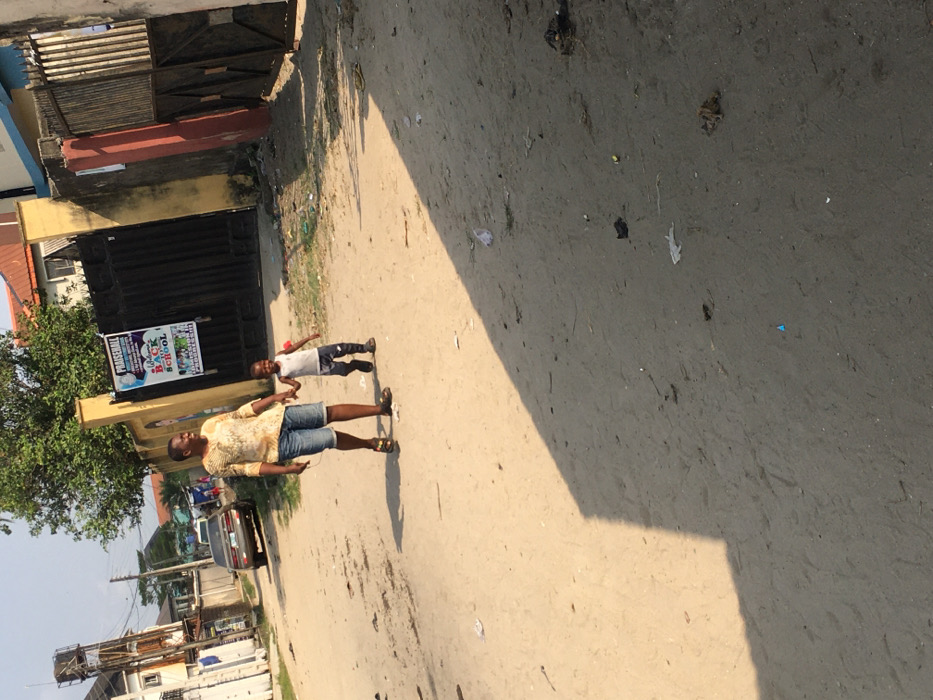 The image depicts an unpaved, sandy road in Iranla, Nigeria, under bright daylight