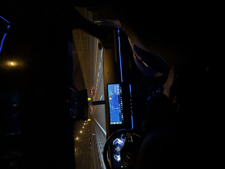 - "The image depicts a nighttime scene from the interior of a modern BMW vehicle, likely from a rear passenger perspective, looking forward through the windshield" by FM-wzXZC3, licensed under CC BY 4.0