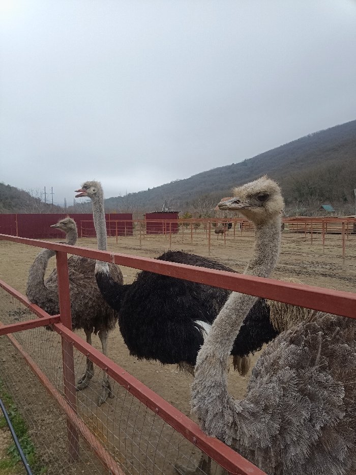 - "This image depicts an outdoor ostrich enclosure at an ostrich farm in Терновский округ, Ukraine, under an overcast sky" by FM-71LUI2, licensed under CC BY 4.0
