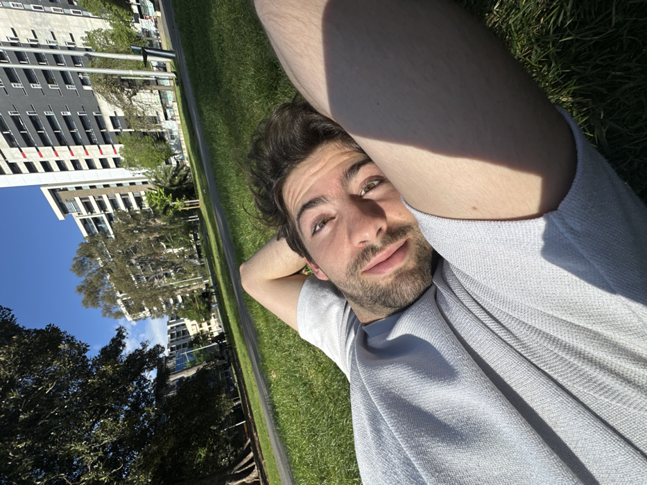 - "A male individual is observed lying supine on green grass in a park under a clear blue sky" by FM-P0ePn2, licensed under CC BY 4.0