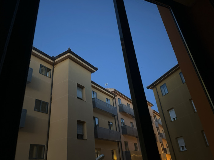 - "The image depicts an urban residential scene in Segovia, Spain, observed through a dark window frame during a twilight period, evidenced by the deep blue sky" by FM-QCFLT2, licensed under CC BY 4.0