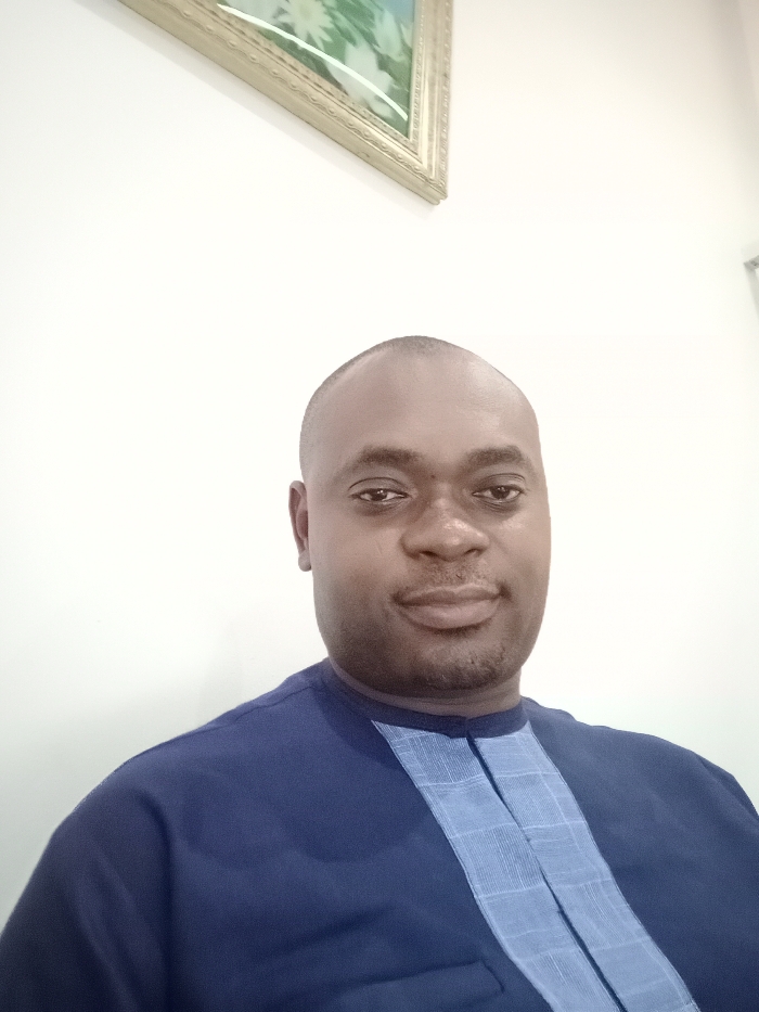 An indoor, head-and-shoulders portrait depicts an adult male in Gwarinpa, Nigeria