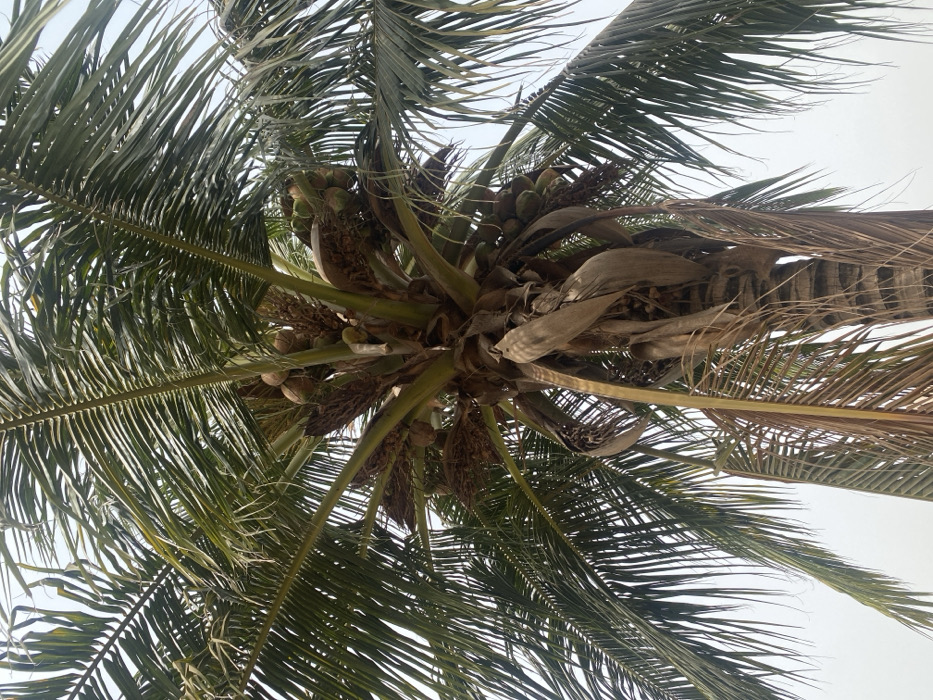 - "This image depicts a mature coconut palm tree (Cocos nucifera) viewed from a low-angle perspective, focusing primarily on its crown and the upper section of its trunk" by FM-6MdWB2, licensed under CC BY 4.0