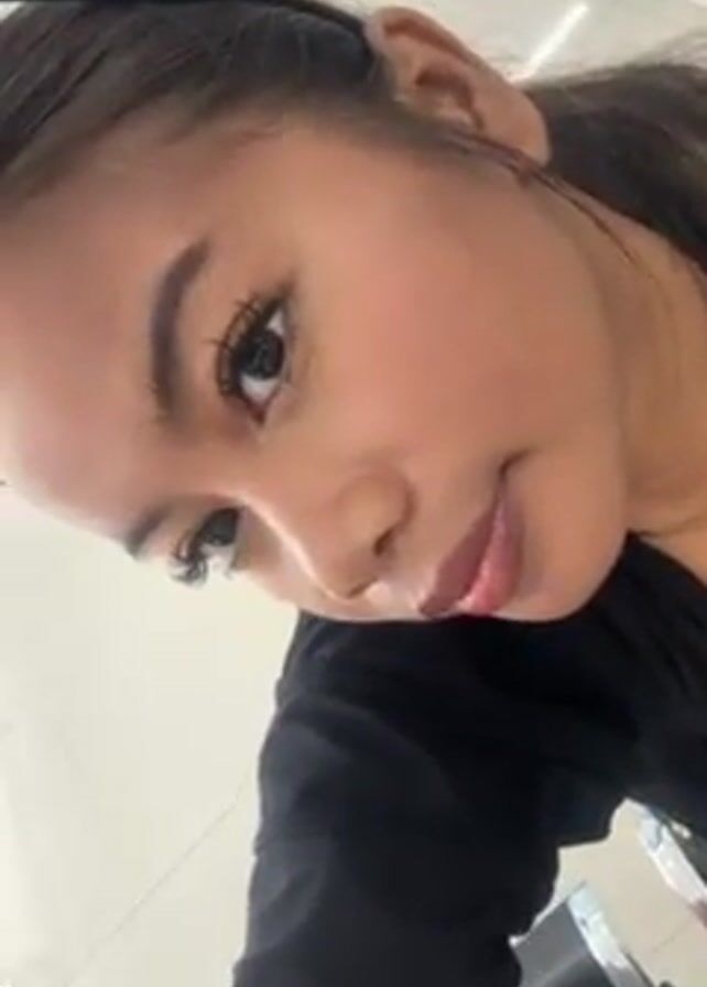 A woman is holding the camera up to her face indoors, taking a selfie video