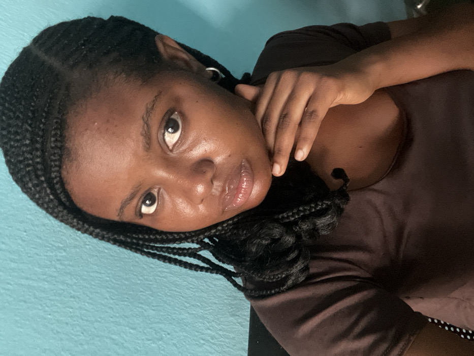 - "A young woman with braided hair rests her cheek on her hand, gazing directly at the viewer" by FM-Ndipm1, licensed under CC BY 4.0