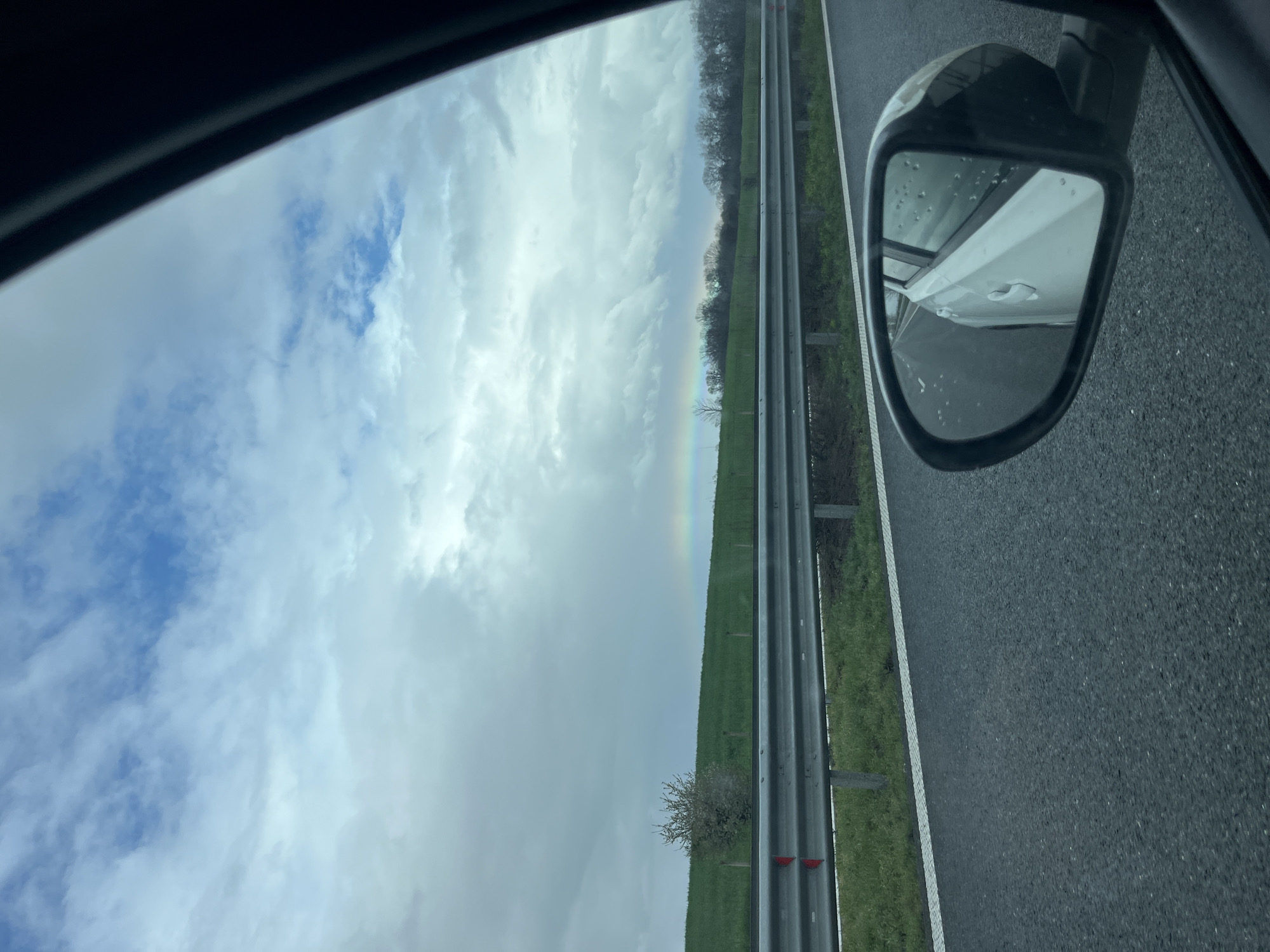 - "The image, taken from inside a moving car, shows a landscape with a partial rainbow in the distance" by FM-yFcJs2, licensed under CC BY 4.0