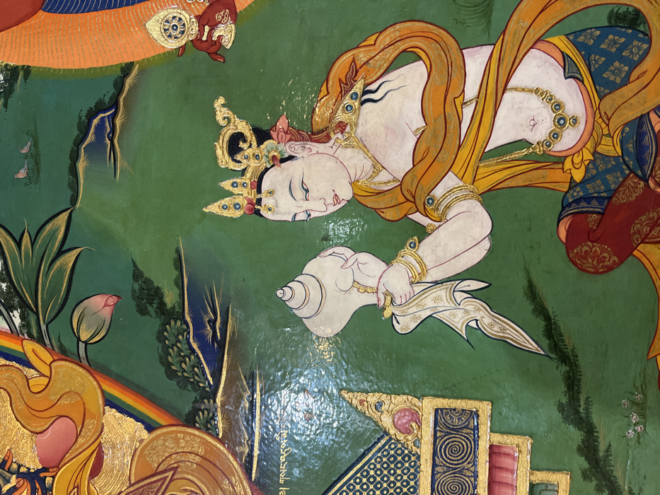 - "This image depicts a segment of a traditional Tibetan Buddhist mural or Thangka painting, consistent with artworks found in a religious edifice in Lhasa, China" by FM-VYYYD2, licensed under CC BY 4.0