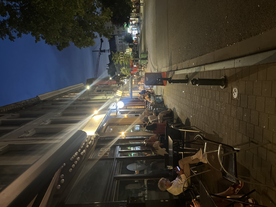 - "The image depicts a nighttime street scene in Ixelles - Elsene, Belgium, centering on an active outdoor dining area" by FM-NQrs03, licensed under CC BY 4.0