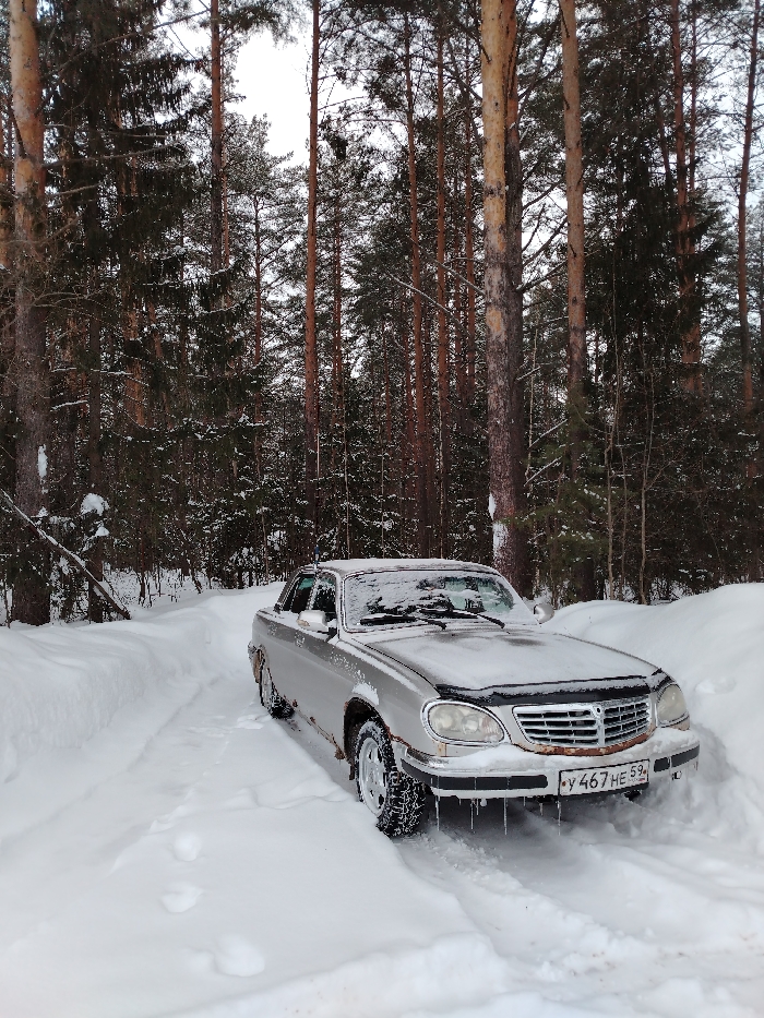 - "A silver GAZ-31105 Volga sedan is depicted stationary on a deeply snow-covered track within a dense coniferous forest" by FM-rjT3z2, licensed under CC BY 4.0
