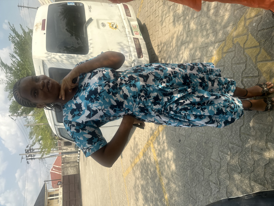 A young adult female is depicted standing outdoors in Ozuaha, Nigeria, under bright daylight