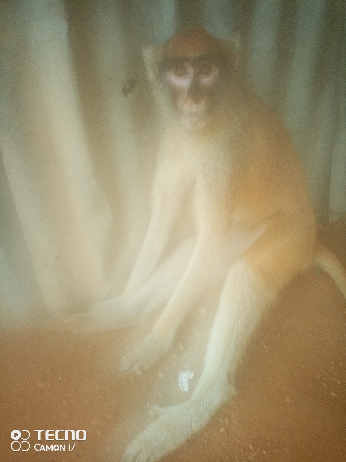 - "The image presents a hazy, soft-focused full-body view of a monkey seated on a reddish-brown dirt surface" by FM-4ILJx1, licensed under CC BY 4.0