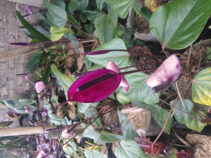 - "The image displays a detailed view of multiple Anthurium plants, situated in a garden or nursery environment in Cimacan, Indonesia" by FM-MFDKS2, licensed under CC BY 4.0