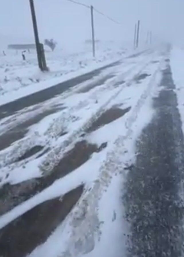 The video depicts a snow-covered road on a bleak, overcast day