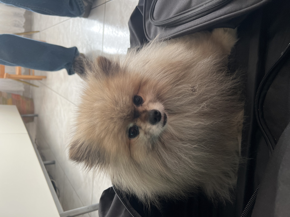 - "A tan Pomeranian dog with fluffy fur sits in a dark gray backpack" by FM-sLRpr2, licensed under CC BY 4.0