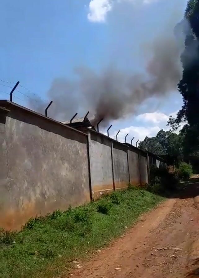 grey wall topped with barbed wire, with black smoke rising from behind it