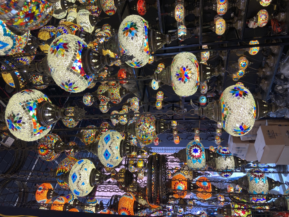 - "The image displays an indoor retail or display area in the city of Kanchon, Bangladesh, densely populated with numerous illuminated mosaic lamps" by FM-BeFBg1, licensed under CC BY 4.0