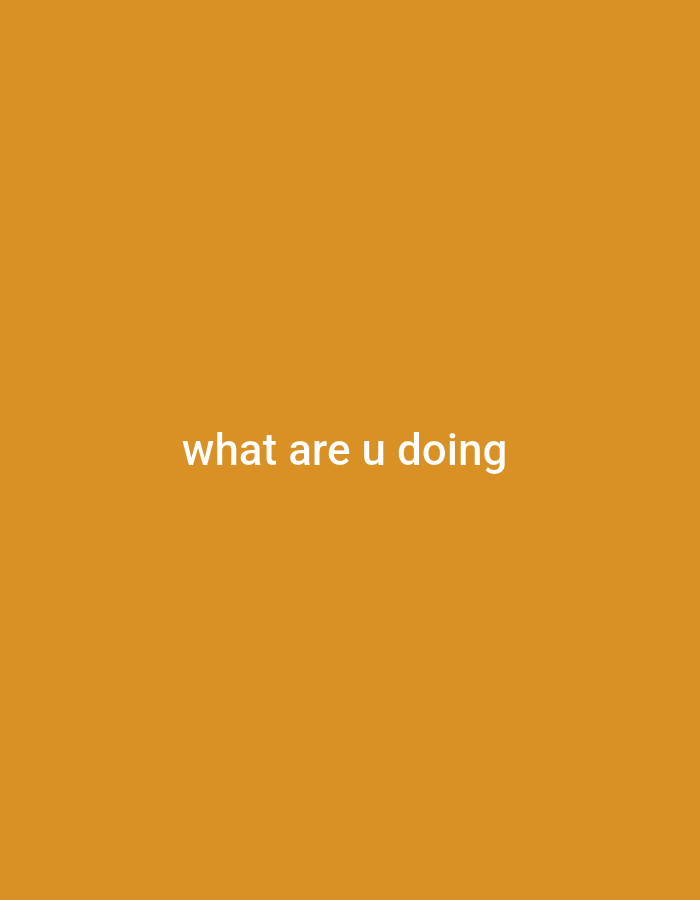 The image displays a uniform orange background. Centered horizontally on this background, white sans-serif text reads "what are u doing". No other subjects, objects, people, actions, interactions, or environmental features are present within the frame. The specified location is the city of Yelwa, Nigeria.