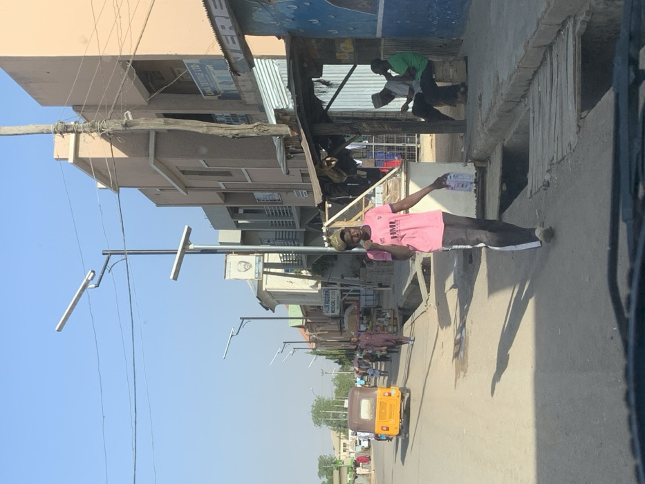 - "The scene depicts a street in Hotoro South, Nigeria, under a clear blue sky with strong sunlight casting long shadows" by FM-Bh3W72, licensed under CC BY 4.0