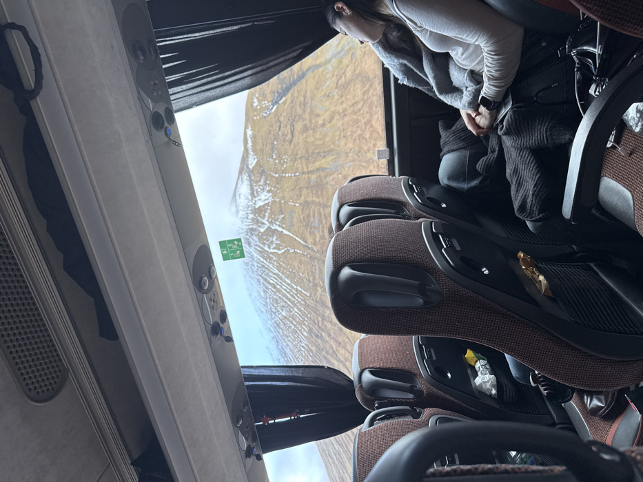 The scene depicts the interior of a passenger coach in the vicinity of Bridge of Orchy, United Kingdom