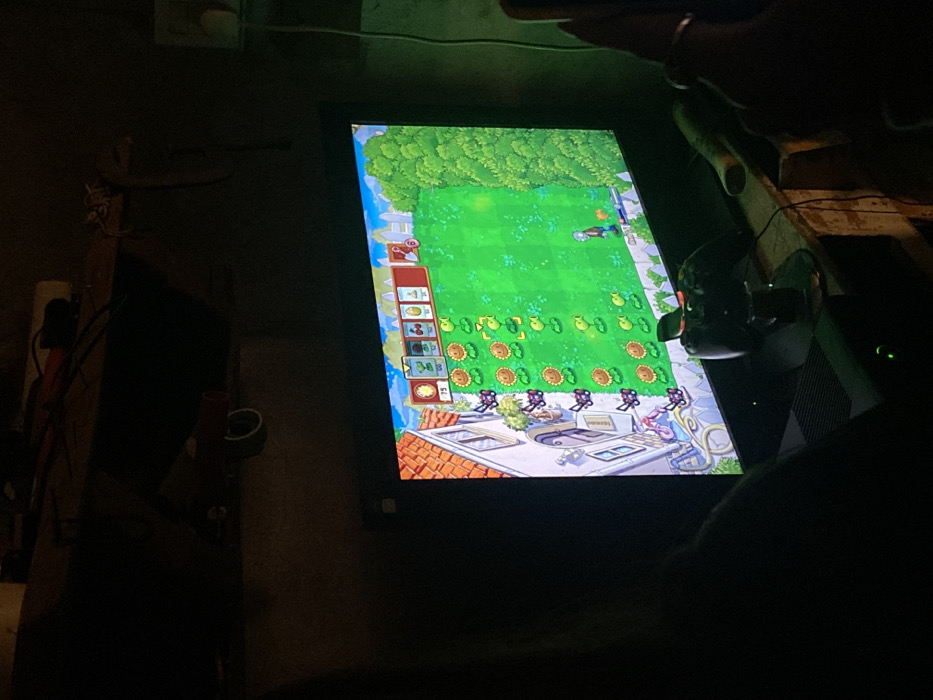 A screen displays the game Plants vs