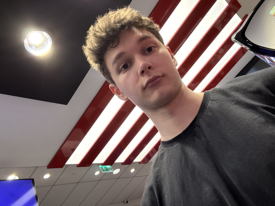 - "An upward-angled, close-up photograph depicts a young adult male, likely Caucasian, with short, light brown hair, positioned centrally" by FM-6fkMy1, licensed under CC BY 4.0