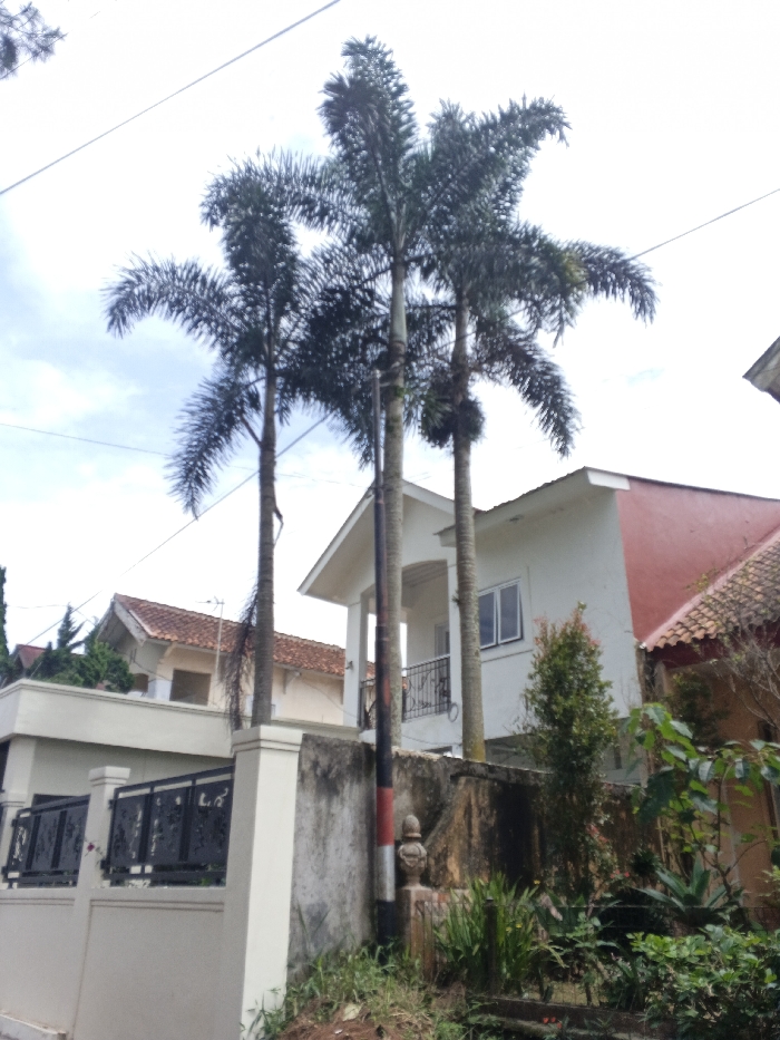 - "Three tall palm trees stand in front of a two-story white house with a red accent wall" by FM-SJTVw1, licensed under CC BY 4.0