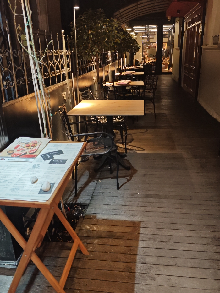 - "The image depicts the outdoor dining area of Steakhall by The Olive Tree, located at Oborishte 19, Sofia Center, Bulgaria, during nighttime" by FM-xCddJ3, licensed under CC BY 4.0