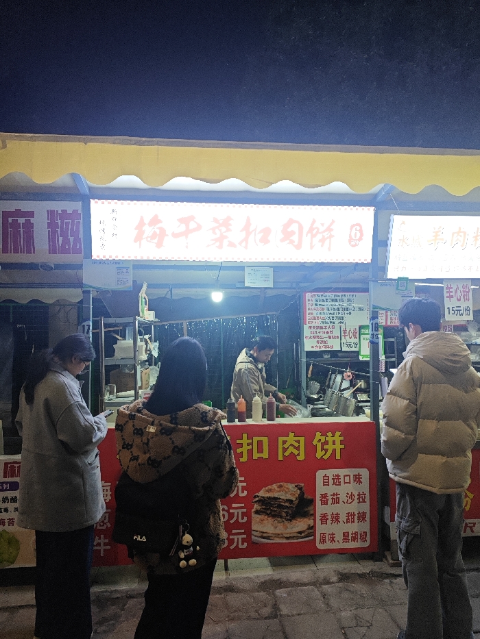 The image displays an outdoor food stall operating at night in Shapingba District, China