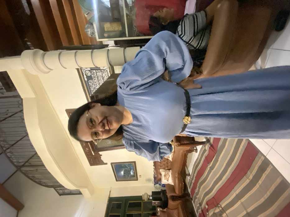 An indoor scene in the city of Mojokerto, Indonesia, depicts a woman posing for the camera
