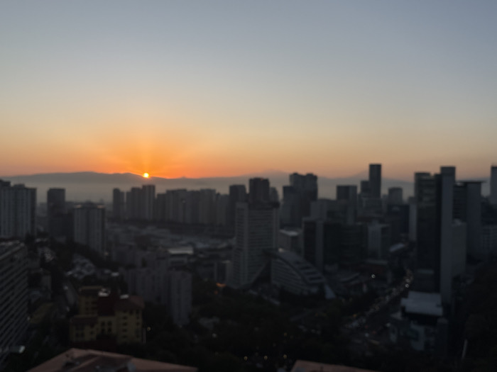 - "An out-of-focus, high-angle aerial view depicts the cityscape of Mexico City, Mexico, during either sunrise or sunset" by FM-21Qs12, licensed under CC BY 4.0