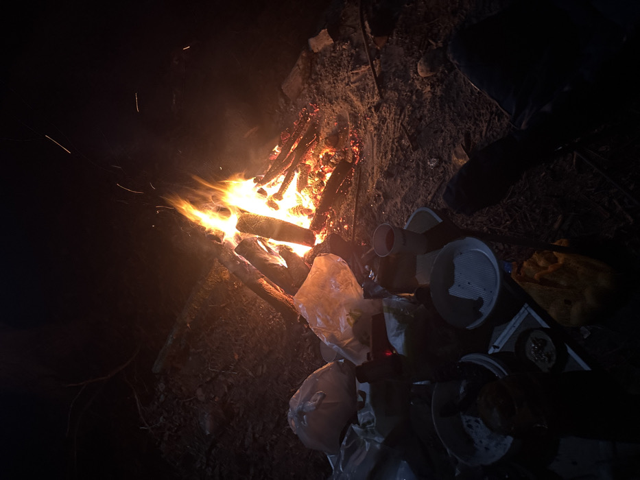 - "The image displays an outdoor night scene in Suhache, Bulgaria, illuminated primarily by a large, active campfire located in the upper right quadrant" by FM-9ZuG02, licensed under CC BY 4.0