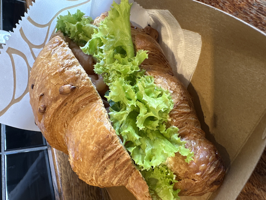 - "An elongated, golden-brown croissant sandwich is presented inside a light brown cardboard takeaway container" by FM-cOgJG3, licensed under CC BY 4.0