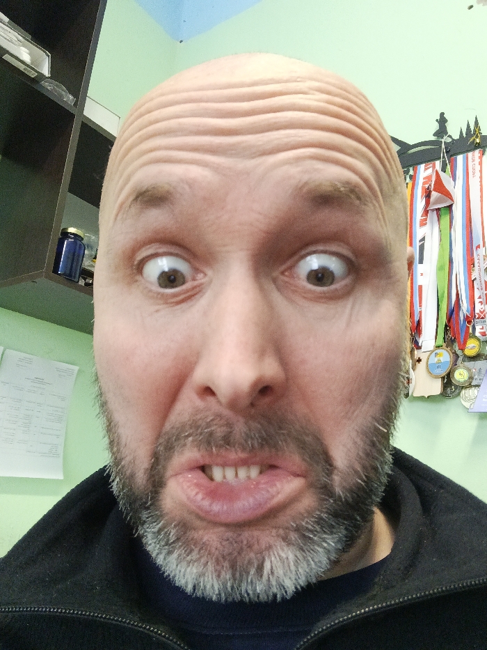 - "A close-up shot of a bald man with a grey beard, his face contorted in an exaggerated expression" by FM-F2yRz1, licensed under CC BY 4.0