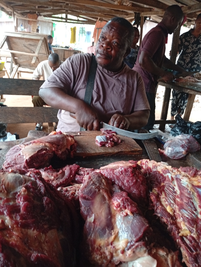 - "The scene depicts an active butcher stall in an open-air market in Omicha Umu Awada, Nigeria" by FM-sXcMk2, licensed under CC BY 4.0