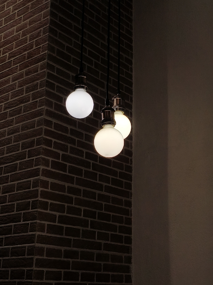 - "An interior scene in Kolkata, India, depicts three illuminated spherical light bulbs against a dark background" by FM-Urddm2, licensed under CC BY 4.0